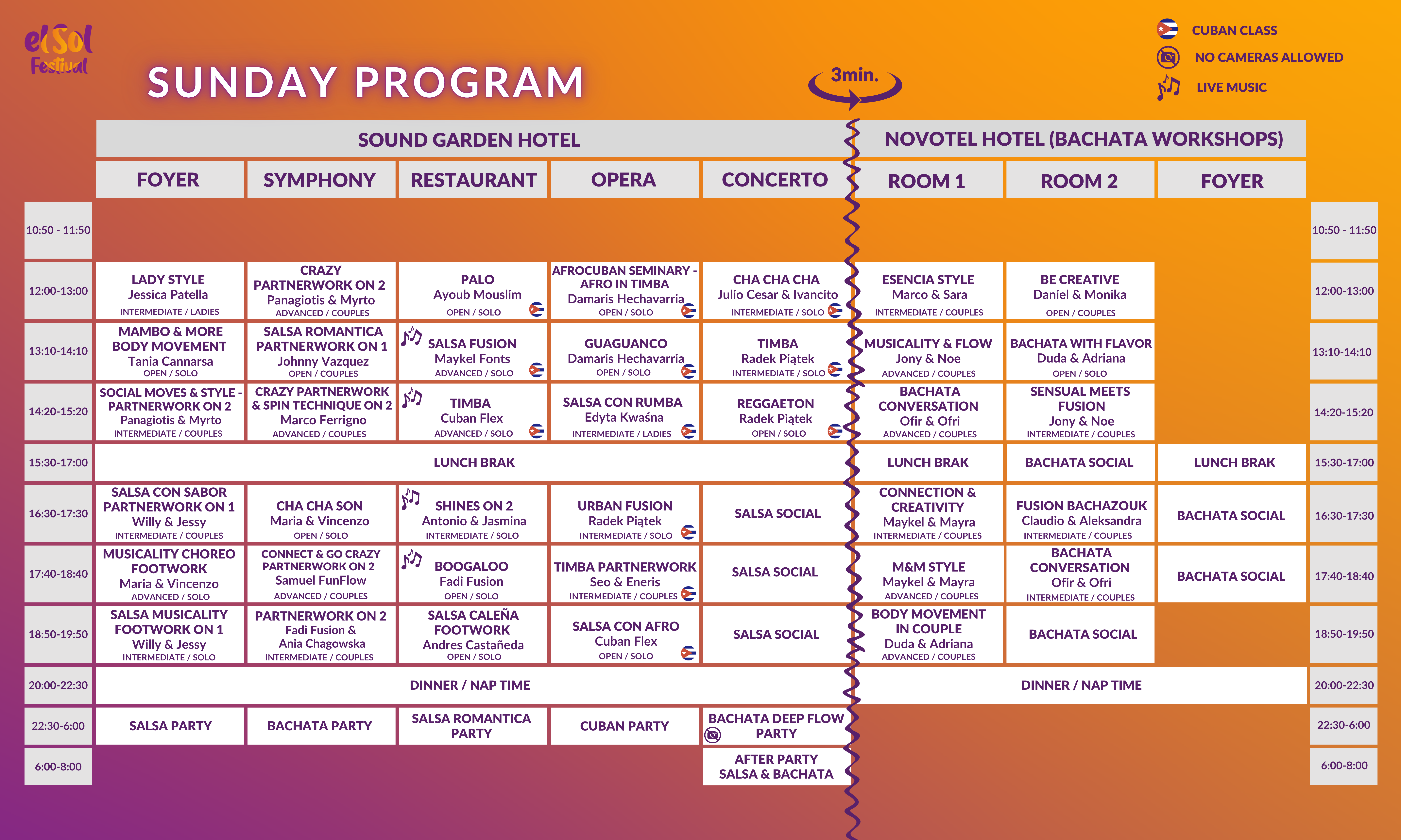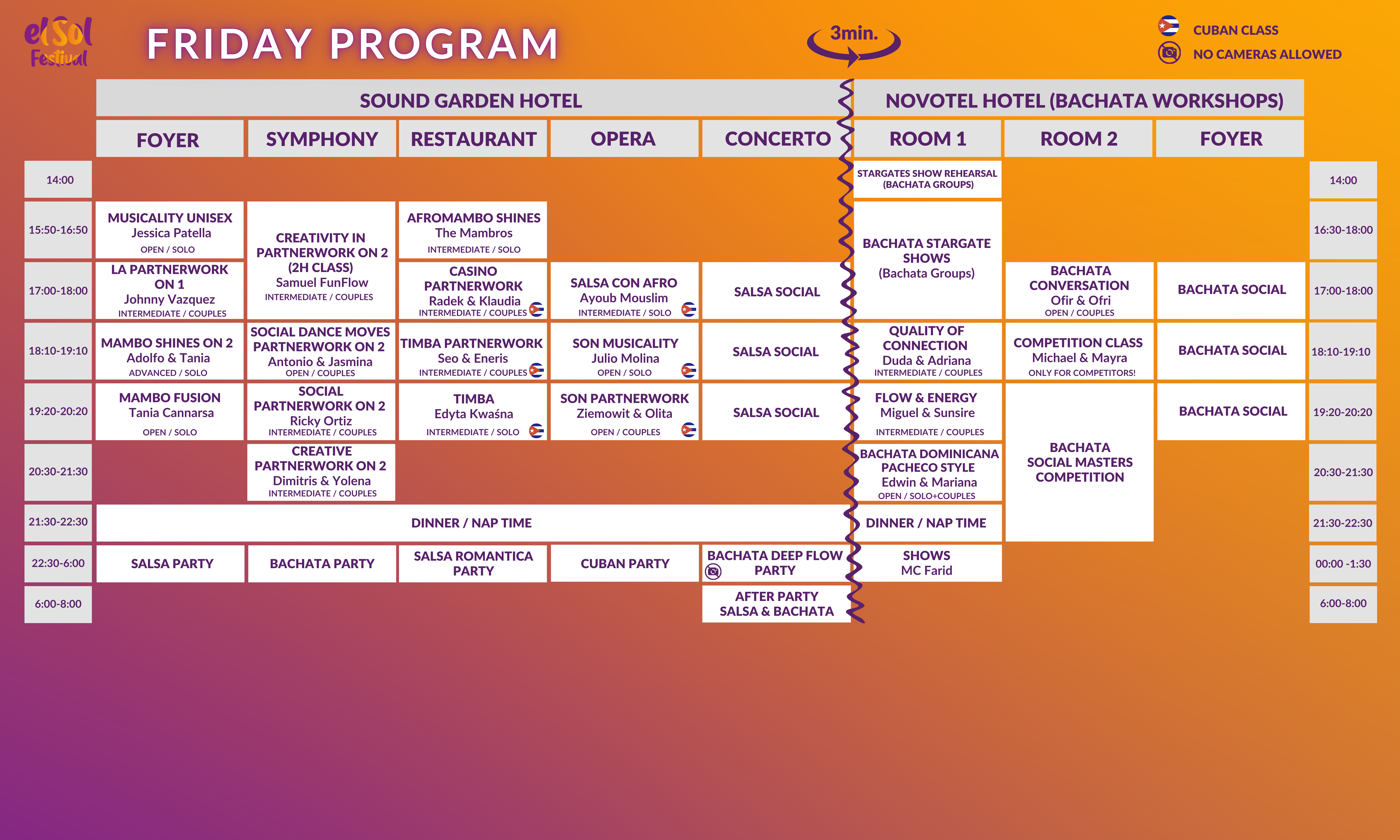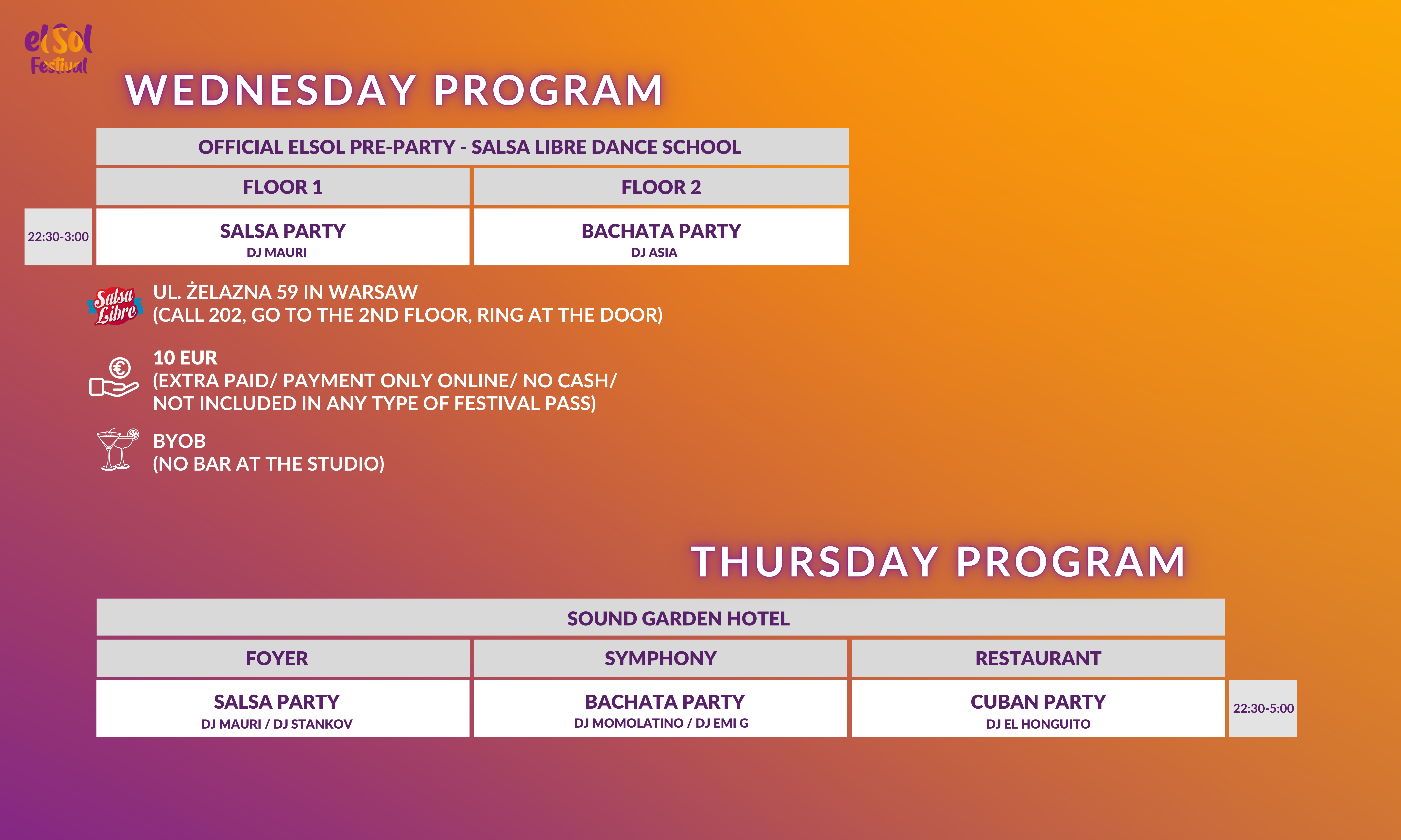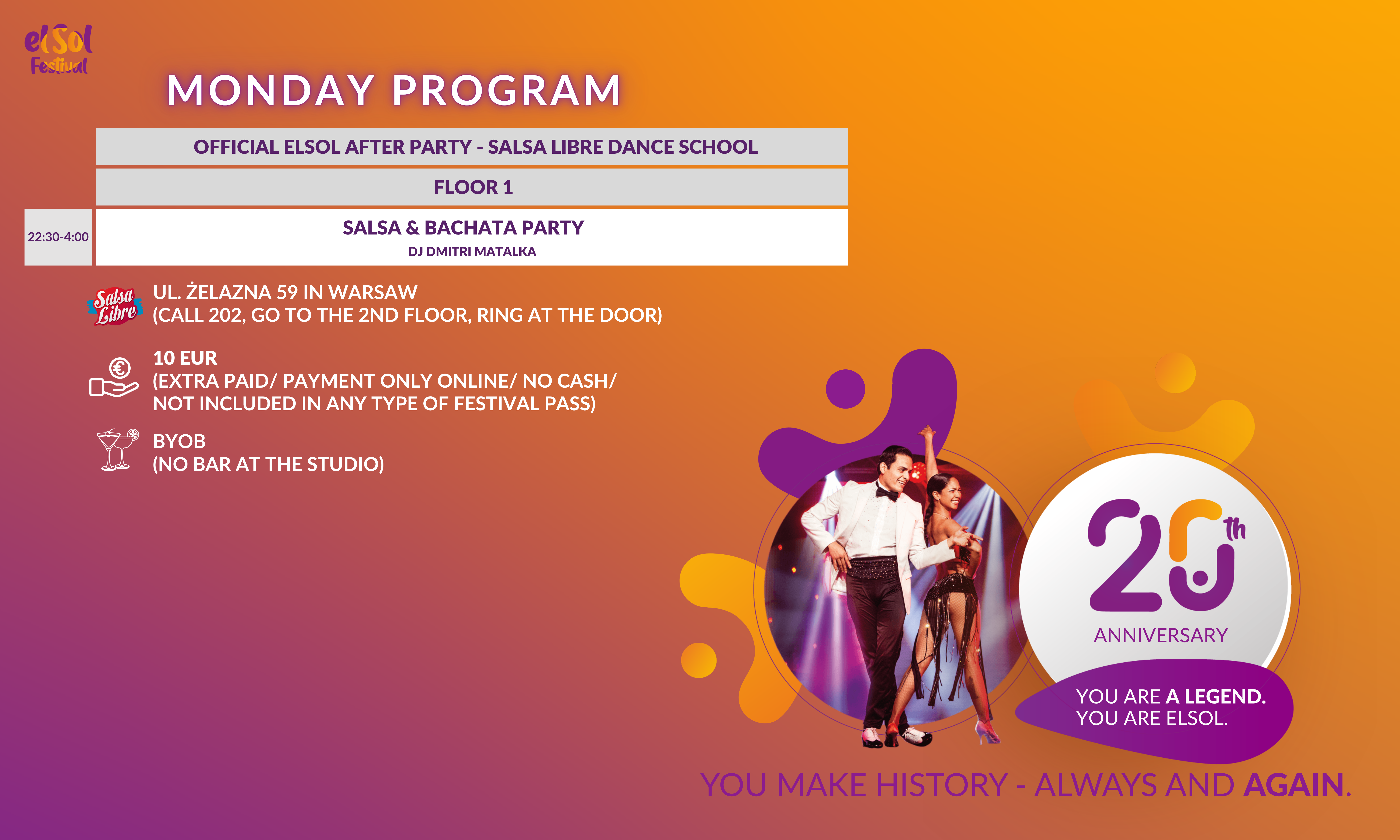 ELSOL FALL Program Nasz program obejmuje... ..over 100 hours of workshops, 2 competitions, 2 show nights, 4 dance nights, 1 before & 1 after party, day socials and night parties on 5 dance floors!